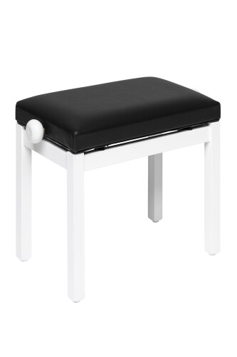 Matwitte pianobank met zwarte kunstleren bekleding
